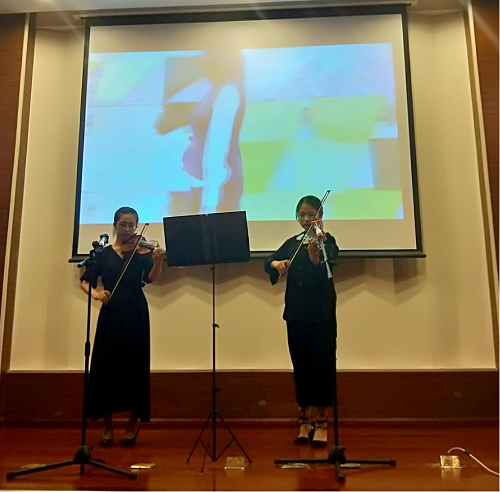 本次音樂會由藝術教育中心主辦,學生藝術團管弦樂團承辦。在主持人宣布演出正式開始后,一曲《我的祖國》為本次音樂會拉開了帷幕。《我的祖國》深切地表達了濃烈的愛國主義思想,背景視頻中祖國的大好河山與優美的樂聲融為一體,演出了“這是美麗的祖國”的主題,激情澎湃,氣勢磅礴。