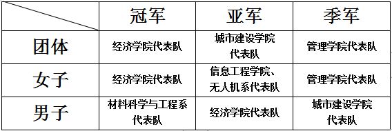 啟動(dòng)儀式后,一二·九運(yùn)動(dòng)越野賽正式開(kāi)始。比賽共有10支院系代表隊(duì)參加,每隊(duì)各10名學(xué)生(五男五女)參加比賽。經(jīng)過(guò)女子1500米、男子3000米激烈的比賽,比賽結(jié)果如下: