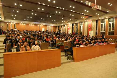 活動開始前,第九期團校師生向南京大屠殺遇難者同胞集體默哀。此次班級成果匯報分為“十九大”理論知識競賽和班級風采展示兩個環節。在“十九大”理論知識競賽環節,全體學員及班主任通過掃描二維碼進入手機網絡答題。此次理論知識競賽緊緊圍繞黨的十九大報告、習近平新時代中國特色社會主義思想等方面內容開展,營造學習貫徹黨的十九大精神的濃厚氛圍。班級風采展示中,團校14個班結合PPT及視頻分別從班級介紹、自主學習、社會調研、素質拓展等多方面進行展示。每個班級學生代表的演講、視頻、風貌展示都頗有特色,通過不同的角度將銳意創新、敢于擔當等新時代大學生骨干的精神面貌和團結奮進、青春活力等新時代青年大學生集體的風采最大程度的展現給大家,彰顯出團校班級的凝聚力和團干部蓬勃向上的朝氣。通過班級風采展示使學員們更深刻地體會到作為共青團員的光榮與職責。