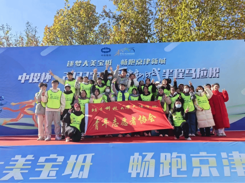 2023年寶坻“京津新城半程馬拉松賽”正式拉開帷幕,千余名跑者在賽道上馳騁,長達21.975公里的賽道沿線,亮眼的熒光綠色星星點點,來自北京科技大學天津學院的60余名志愿者為比賽的后勤保障不離不棄。