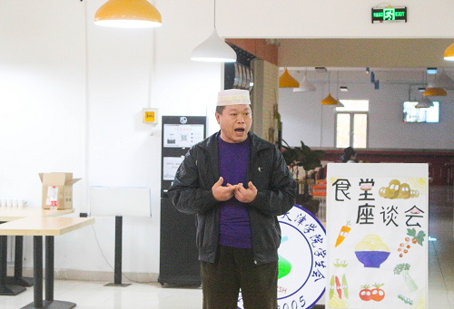 2018年11月14日下午15:30,北京科技大學天津?qū)W院學生會常代共建委員會聯(lián)合后勤處,在二食堂舉辦以“欲食天下新鮮,安全牢記心間”為主題的食堂座談會,出席本次座談會的有后勤處飲食中心主任趙學權老師,學校食堂經(jīng)理及工作人員和學生代表們。