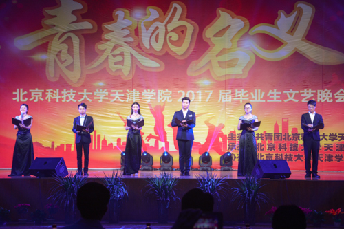 5月24日19:00,“青春的名義”北京科技大學(xué)天津?qū)W院2017屆畢業(yè)生文藝晚會(huì)在學(xué)院體育館隆重舉行。北京科技大學(xué)天津?qū)W院黨委書記、院長(zhǎng)王斌,黨委副書記白亮、葉振楠,教務(wù)處處長(zhǎng)張建華,土木系主任劉勝富,材料系主任沈衛(wèi)平,法律系主任朱京安,黨建辦主任郭雅娟,國(guó)際交流處處長(zhǎng)柯瑜,經(jīng)濟(jì)系黨總支書記范麗麗,材料系黨總支書記羅富臣,學(xué)生處副處長(zhǎng)、土木系黨總支書記孟祥瑜,管理系黨總支書記王軍,法律系黨總支書記馮海燕,外語(yǔ)系黨總支書記張莉,藝術(shù)系副主任林碧蕓和團(tuán)委書記殷實(shí)等嘉賓出席晚會(huì)并和2017屆畢業(yè)生一起觀看演出。