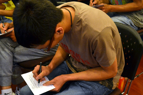 在一段簡短的視頻之后,主題活動正式開始。孝心社張永康同學首先與大家分享了他對孝道的理解和體會。道橋1205班同學自己拍攝并制作的視頻記錄了同學們對父母的愛,流露了同學們對父母真誠的關心。孝心社劉曉通過自己的親身經歷告訴了大家“行孝不能等”這個道理。部分同學的父母以視頻的方式,表達了他們對于在遠方求學的同學們的掛念和祝福。“希望孩子在學校注意身體,好好讀書,以優異的成績完場學業”、“希望孩子在學習快快樂樂生活,健健康康成長”一句句樸實無華的話語讓在場的既驚喜又感動。楊富榮同學的媽媽得知學院將舉辦此次活動后,不遠千里,從貴州來到活動現場。她對同學們說:“希望同學們在保重身體的前提下,用心學習、努力鉆研,以優異的成績回報母校,回報社會。”活動最后,同學們將自己對爸爸媽媽想要說的話寫在明信片上,裝在提前準備好的信封里,并在現場共同喊出了自己心里的那句:“爸爸媽媽,我愛你們”!