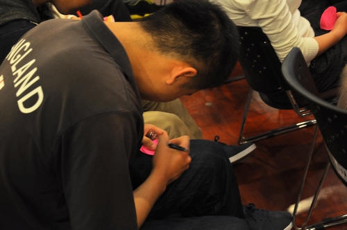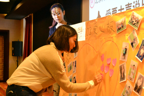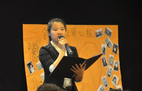 一段簡單的開場之后,孝心社張永康同學首先與大家分享了他對孝的理解。 “孝心,并非是長大后才有的責任,也并非是用金錢就能彌補”、“孝心其實很簡單,比如,為家里清掃一次房間;為母親倒一杯水;為父親捶一次背……”樸實的話語道出了他對孝的點滴體會。金融1103班班同學自己拍攝并制作的視頻記錄了他們對父母想說的話。孝心社劉曉通過自己的親身經歷告訴了大家“行孝不能等”這個道理,很多同學聽完之后都默默的擦起了眼淚。李翔同學演唱的《父親》也深深的打動了大家。部分同學的父母用電話錄音的方式表達了他們對于在遠方求學的同學們的掛念和祝福。全班同學和著鋼琴伴奏共同演唱了《燭光里的媽媽》,歌聲傳遞了同學們對爸爸媽媽的祝福。活動最后,同學們將自己對爸爸媽媽想要說的話寫在留言板上,一句句簡單的話表達了對父母真摯的愛。