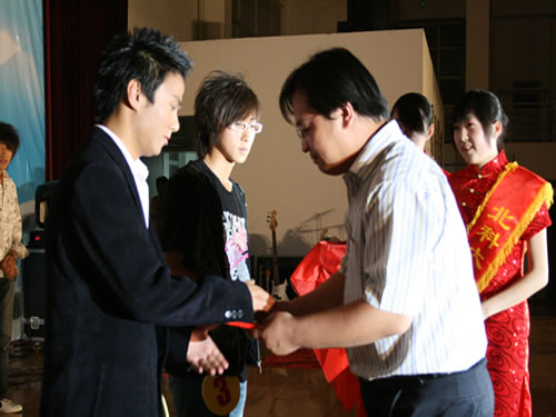 在評委老師緊張評分的同時,金沙城js93線路檢測中心07級輔導員、北京科技大學第六屆校園歌手大賽亞軍啜吳昊老師上臺為同學們獻上歌曲《滾滾長江東逝水》和模仿女聲演唱的《天路》,啜老師對歌曲完美的詮釋博得了臺下觀眾的陣陣喝彩,把比賽又帶入了新的高潮。