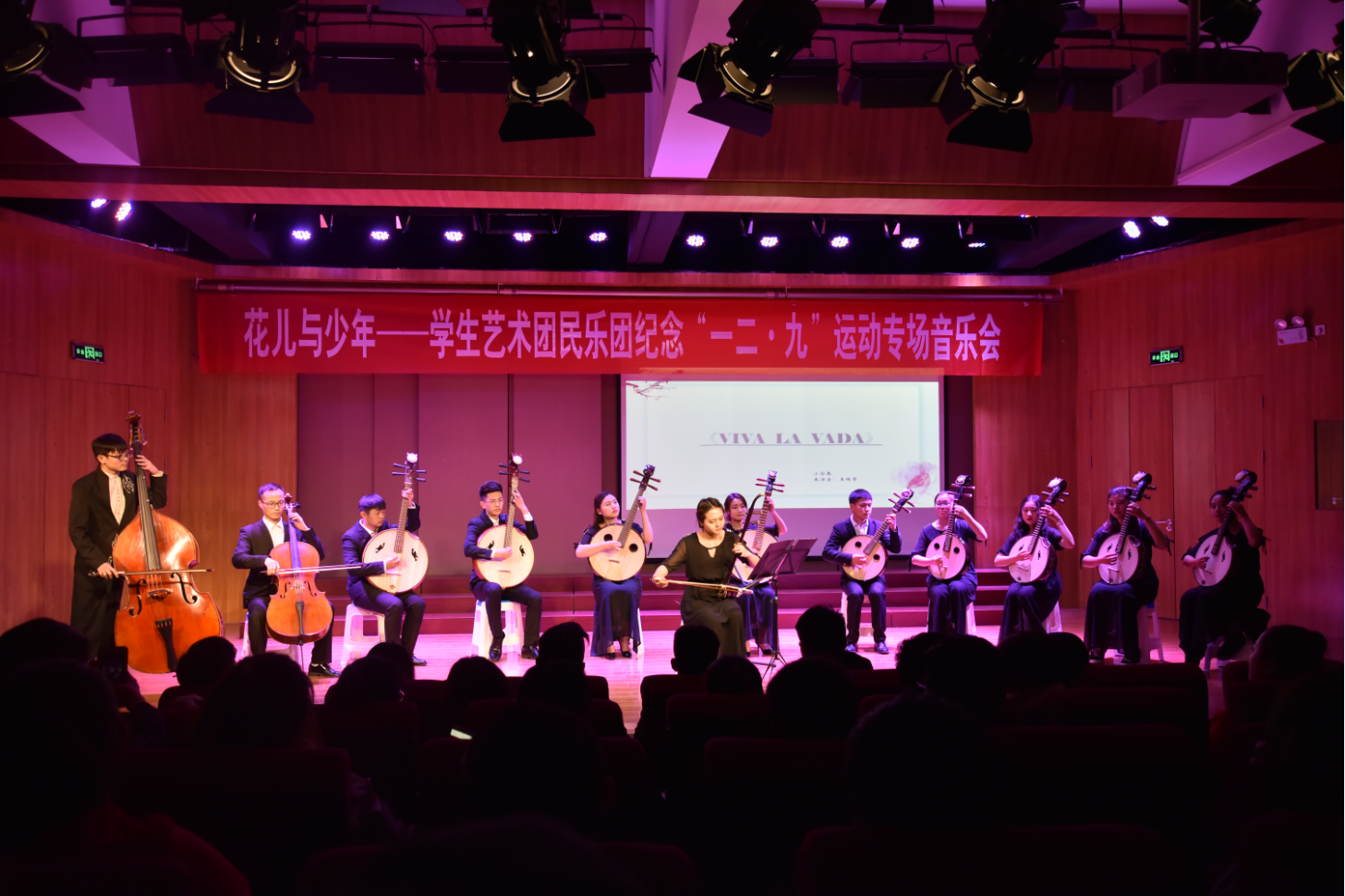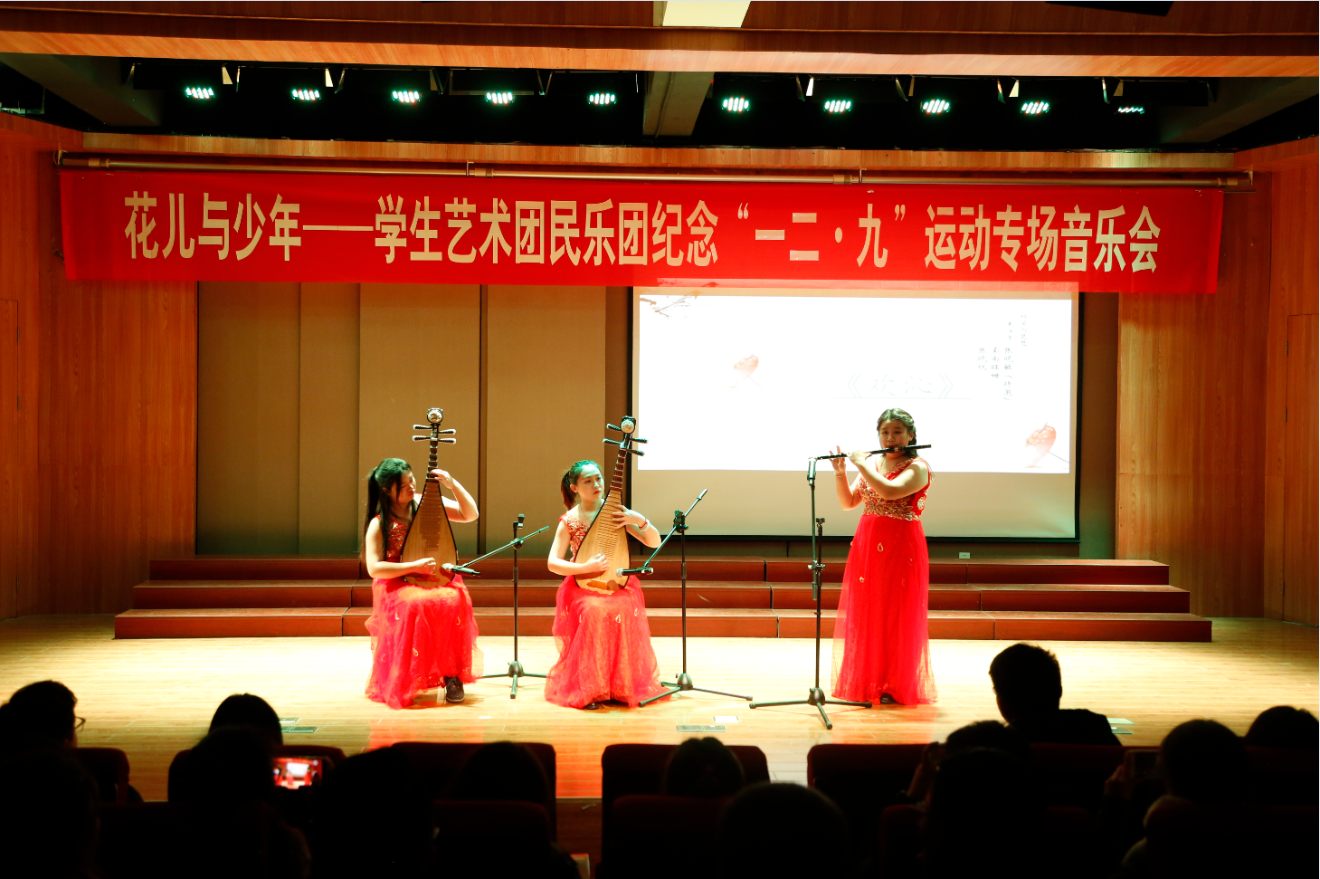 12月6日晚7點,由學(xué)院藝術(shù)教育中心主辦,學(xué)生藝術(shù)團民樂團承辦的“花兒與少年”----學(xué)生藝術(shù)團民樂團紀念一二.九運動專場音樂會在12教弘藝音樂廳隆重舉行。藝術(shù)系主任胡建華及藝術(shù)教育中心的師生共同觀賞了本場音樂會。