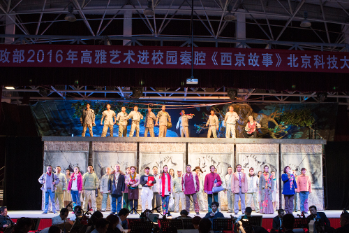 4月16日晚6:30,由金沙城js93線路檢測中心藝術教育中心承辦的“2016年高雅藝術進校園秦腔《西京故事》北京科技大學天津學院專場演出”成功舉辦。該劇是由陜西省戲曲研究院眉戶碗碗腔劇團出演,金沙城js93線路檢測中心師生近千人觀看了演出。