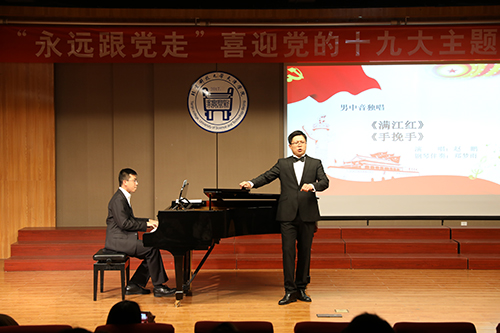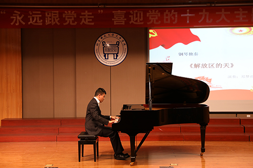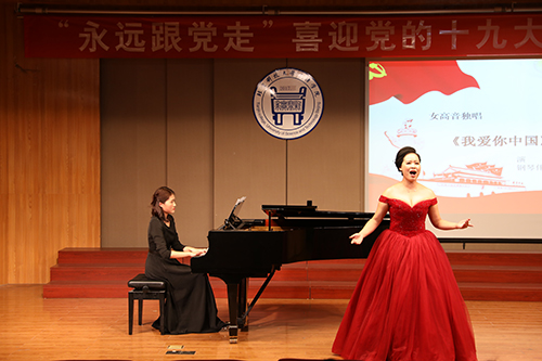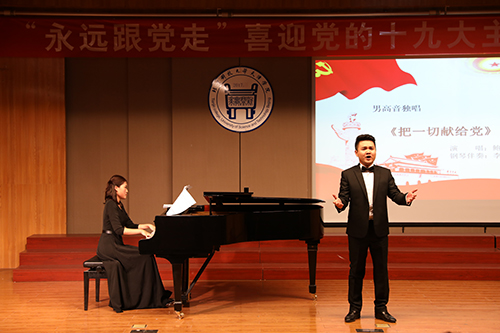 為迎接黨的十九大勝利召開, 10月17日晚7點(diǎn),由北京科技大學(xué)天津?qū)W院黨委宣傳部主辦,藝術(shù)系、藝術(shù)教育中心承辦的“永遠(yuǎn)跟黨走”喜迎黨的十九大主題音樂會(huì)在12教弘藝音樂廳隆重舉行。學(xué)院黨委書記、院長(zhǎng)王斌,黨委副書記葉振楠、孟菲菲,院長(zhǎng)助理汪飛星,教務(wù)處處長(zhǎng)張建華,信息系主任許學(xué)東,圖書館館長(zhǎng)劉淑娥,藝術(shù)系主任胡建華,后勤處處長(zhǎng)彭鵬及各系黨總支書記出席并觀看了演出。