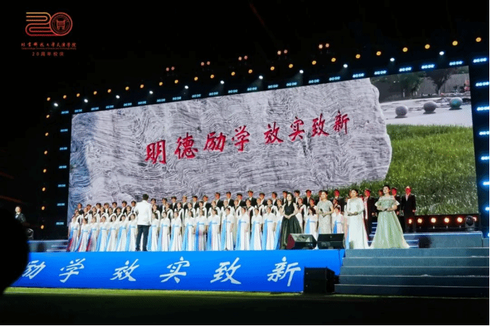 3000余名受邀嘉賓、校友代表、師生代表一起到場觀看演出。廣大師生校友通過網絡直播云端相聚,同享盛會,共同慶祝母校20周年華誕。