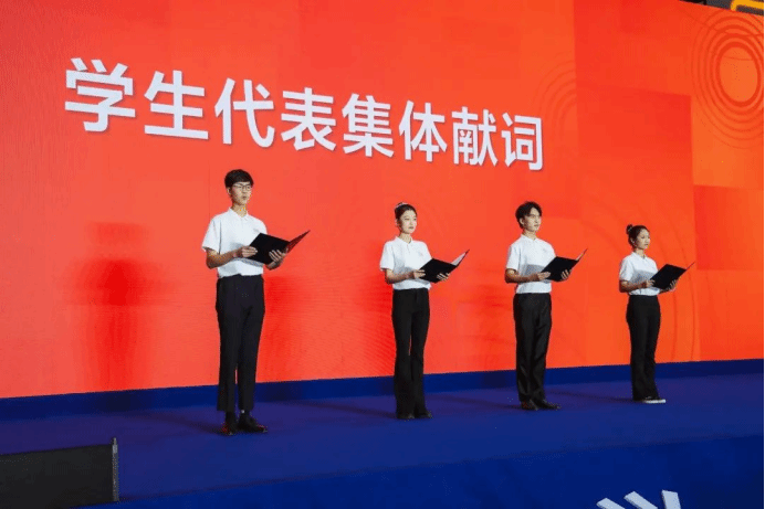 校友代表2013屆金融工程專業(yè)畢業(yè)生白學成、教師代表、基礎部主任、北京市教學名師范玉妹教授分別發(fā)言,學生代表集體獻詞。