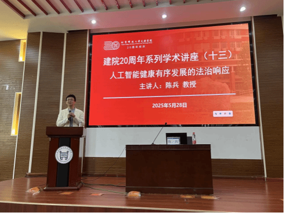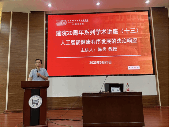 2025年5月28日15時(shí),建院20周年系列學(xué)術(shù)講座第十三講在理工館學(xué)術(shù)報(bào)告廳成功舉辦。南開(kāi)大學(xué)法學(xué)院副院長(zhǎng)陳兵教授為師生們帶來(lái)了一場(chǎng)以“人工智能健康有序發(fā)展的法治響應(yīng)”為主題的精彩講座。此次講座由法律系系主任朱京安教授主持,法律系部分教師及150余名學(xué)生參加了本次活動(dòng)。