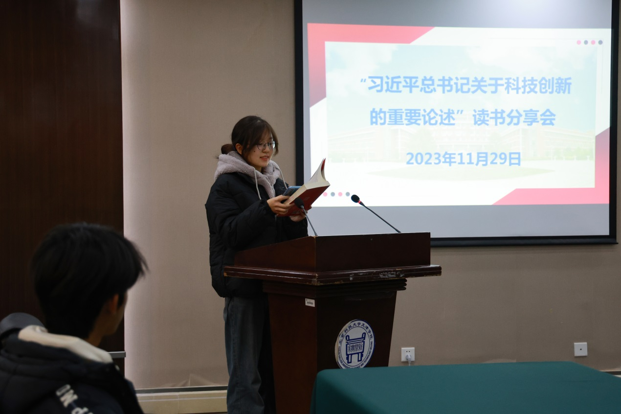 分享會現(xiàn)場,同學們緊緊圍繞習近平總書記重要講話及科技創(chuàng)新的主題,不僅推薦自己閱讀的書籍,還積極分享閱讀中的所感所悟,并與師生積極交流互動,互相碰撞思想,啟迪智慧,讓科技創(chuàng)新的重要論述在當代青年中落地生根。