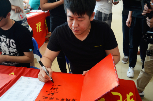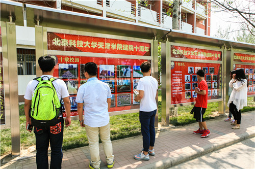 5月16日,陽光透過薄霧灑在北京科技大學天津學院的校園里,校園沐浴在晨曦中顯得生機勃勃。全國各地的校友陸續回到學校參加校慶相關活動。學院志愿者在學院行政樓大廳里設置接待點,以便接待校友返校。