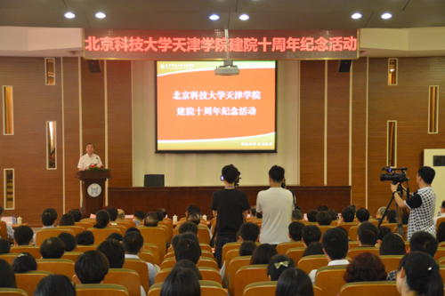 寶坻區委副書記李國田致辭,祝賀北京科技大學天津學院建院十周年以及獲得的成就,感謝天津學院為社會培養了專門人才,希望天津學院銳意進取獲得更大的成功。
