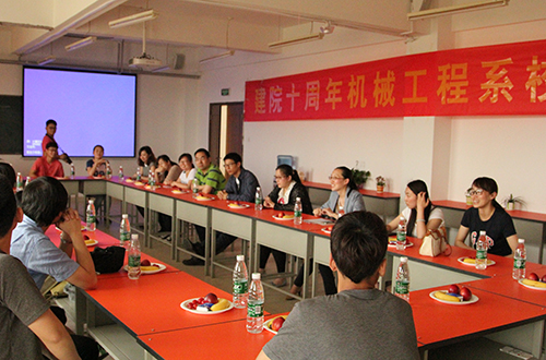 參觀過后我系在12教4層多媒體教室一同開展了主題為“建院十周年機械工程系校友座談會”,會上校友代表紛紛發(fā)言,訴說著離校后的人生經歷,并將他們的人生經驗和處世之道傳授給后輩,將“不甘于后”的精神發(fā)揚光大。之后觀看了機械系十年來一同走過的時光短片。他們勸誡年輕學子“珍惜當下、包容萬物、學會感恩”,要把每一個能把握的機會轉化為未來成功的籌碼,并表達了對母校深深地祝福。