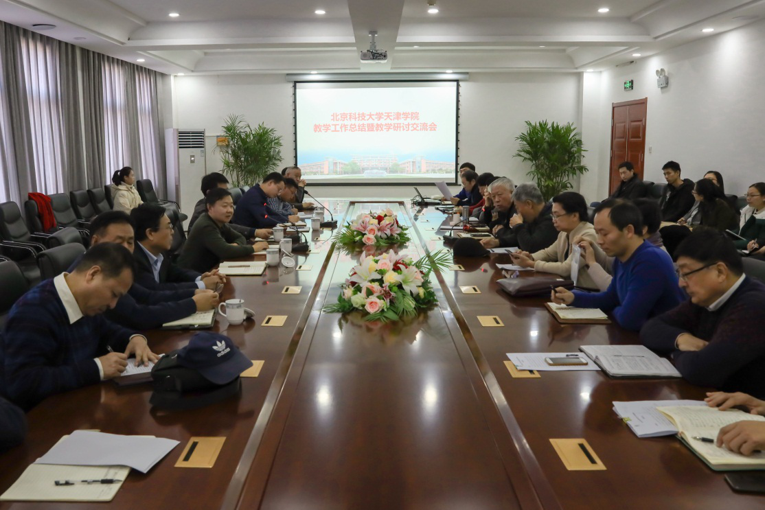 北京科技大學天津學院于2020年1月2日召開北京科技大學天津學院教學工作總結暨教學研討交流會,參加本次大會的有:天津學院院長王斌,黨委書記丁煦生,副院長兼黨委副書記葉振楠,副書記牛犁,副院長張永鋒,財務總監王俊敏,學術委員會主席宋存義,教務處長張建華,各院系部的院長和系主任,以及教輔部門負責人等。會議由教務處長張建華主持。