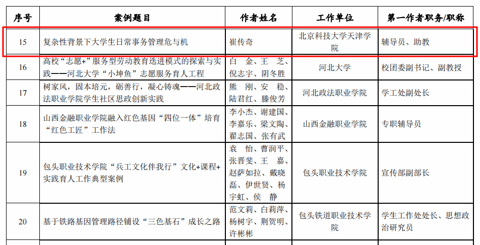 近日,2021年度全國高校思想政治工作優秀案例征集活動結果公布,金沙城js93線路檢測中心輔導員崔傳奇撰寫的工作案例《復雜性背景下大學生日常事...