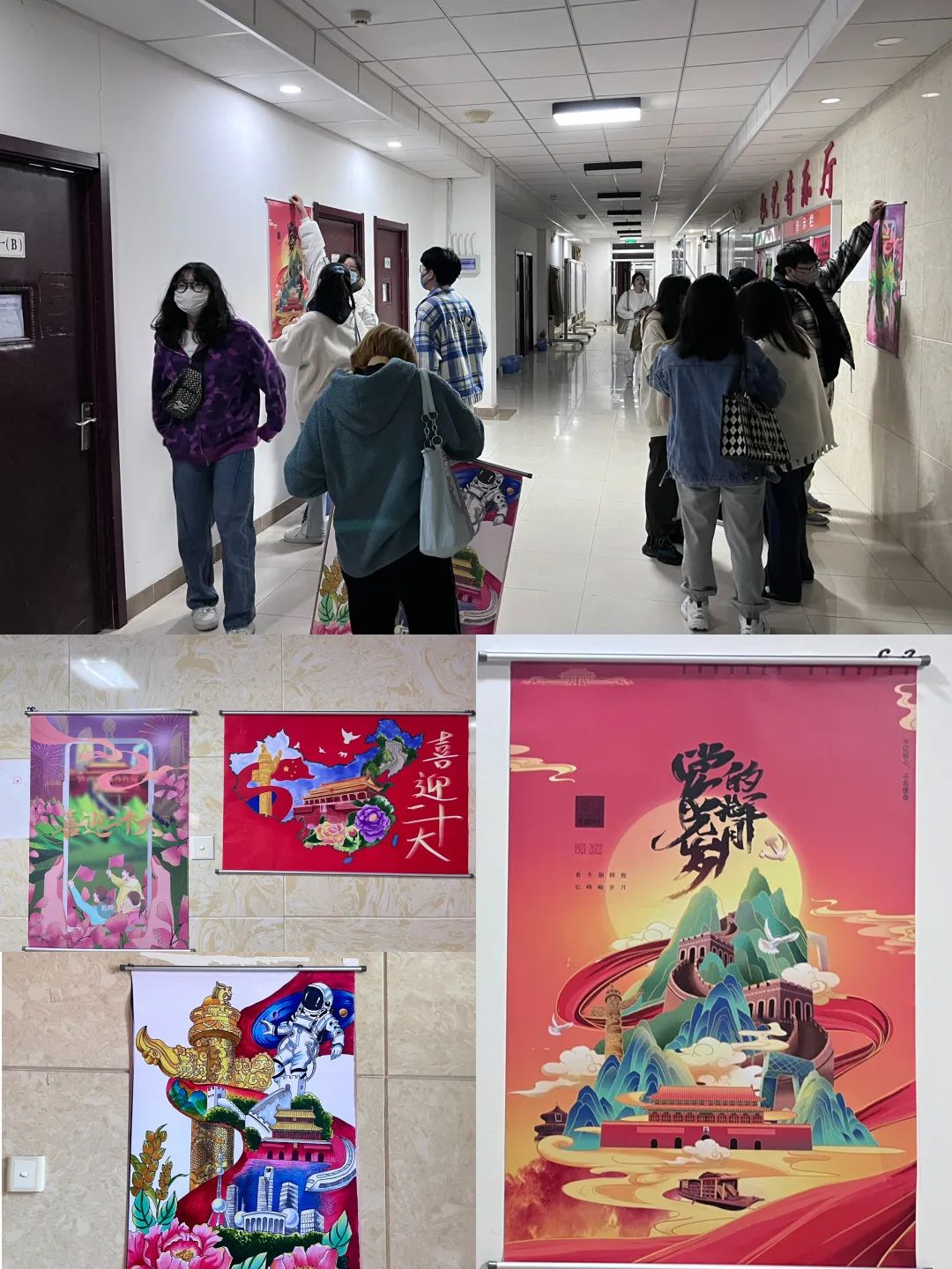 藝術(shù)學院學生第一黨支部開展“喜迎二十大,追夢正當時”主題黨日活動,布置藝術(shù)學院黨建文化墻,裝裱黨支部成員手繪、板繪、海報等喜迎二十大主題作品