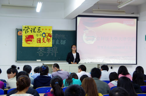 9月底,北京科技大學(xué)天津?qū)W院2011年度“優(yōu)秀團支部”答辯會在8教204舉行。院團委書記羅富臣,副書記遲鐵、孟祥瑜、趙婧媛, 團委各部長及各系分團委書記出席本次答辯會并擔(dān)任評委。本次答辯會共11個團支部參加。