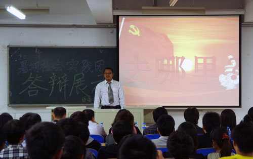 首先,信息工程系“紅色圣地,青春飛揚”實踐團隊的延安之行,帶給了觀眾強烈的震撼。“巍巍寶塔山,滾滾延安水”,這些有著革命圣地獨特氣息的風景,無不感染著在場的每一個人,讓大家身臨其境的感受著延安的紅色革命精神,時刻提醒著我們先烈的偉大與無私,鼓舞著同學(xué)們要立志國家建設(shè),做社會的有用人。然后,理工實驗班“夢之隊”實踐團隊給大家?guī)砹艘惶脷v史與經(jīng)濟結(jié)合的課程。他們沿著歷史的足跡給大家講述了中國古代票號的興衰,讓同學(xué)們在游覽古城的同時了解中國古代經(jīng)濟的發(fā)展史。接著,經(jīng)濟系“知識震撼心靈”實踐團隊把整個答辯展示帶入了一個高潮。一雙雙渴望知識的眼睛,一張張?zhí)煺鏌o邪的笑臉給大家留下了深刻的印象,現(xiàn)場充滿著愛與感動。同時也啟發(fā)同學(xué)們要珍惜自己的學(xué)習條件,明確自己的目標,努力實現(xiàn)自己的夢想。其中,“紅色之旅”實踐團的萬人簽名、“追尋紅色足跡”實踐團的“追尋一大”之旅、社聯(lián)實踐團的民生調(diào)查等活動也是答辯展示會上一道亮麗的風景線,贏得了現(xiàn)場觀眾的熱烈掌聲。他們分別以不同的活動方式慶祝著中國共產(chǎn)黨90周年紀念日,也關(guān)注著現(xiàn)今的民生問題,讓大家看到了一個心中有人民、有國家的集體。最后,團委書記羅富臣為此次答辯會進行點評,他在指出答辯會不足的同時也充分肯定實踐團隊實踐的結(jié)果。并且表明會一直支持各類社會實踐活動,期待有更好的成果展示。