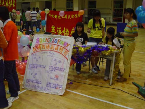 趣味游園活動形式多樣,不僅有個人游戲,還有團體小組游戲。其中,籃球協(xié)會的3對3趣味籃球比賽,是對抗性與趣味性的結(jié)合;科協(xié)的短信大賽,是熟練性與反應(yīng)力的考驗;棋社的五子棋擂主爭霸賽,更是膽略與智慧的較量;還有乒乓球協(xié)會的乒乓球知識競賽、電影協(xié)會的魔術(shù)表演、書法協(xié)會的趣味尋寶等活動,都吸引了眾多同學(xué)積極參與。其間穿插的街舞、樂隊及健美操表演,更為輕松的氣氛添加了活力。