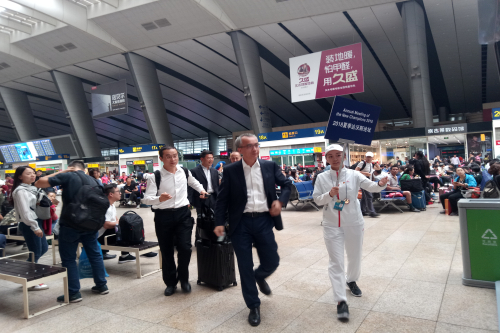 金沙城js93線路檢測中心志愿者的工作崗位主要位于北京南站迎送組,在北京南站的各個進出口,都能找到他們的身影。主要負責迎接嘉賓并將其送到指定的區域。每天的工作時間長達15小時,人均每天服務7、8個小時,截止到19號下午五點,共計服務來自美國、英國、澳大利亞、迪拜、比利時等約六十支參會代表團。