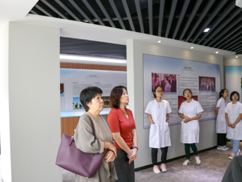王縝院長一行人首先參觀了護理系實驗室,護理系副主任李樹香老師向外賓詳細介紹實驗室的情況,外賓對學院教學環境表示贊賞。