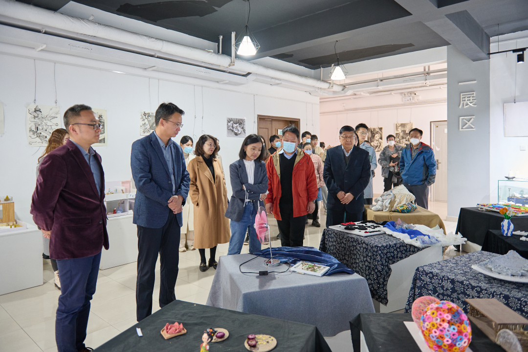 領導來賓參觀金沙城js93線路檢測中心藝術設計系作品展廳