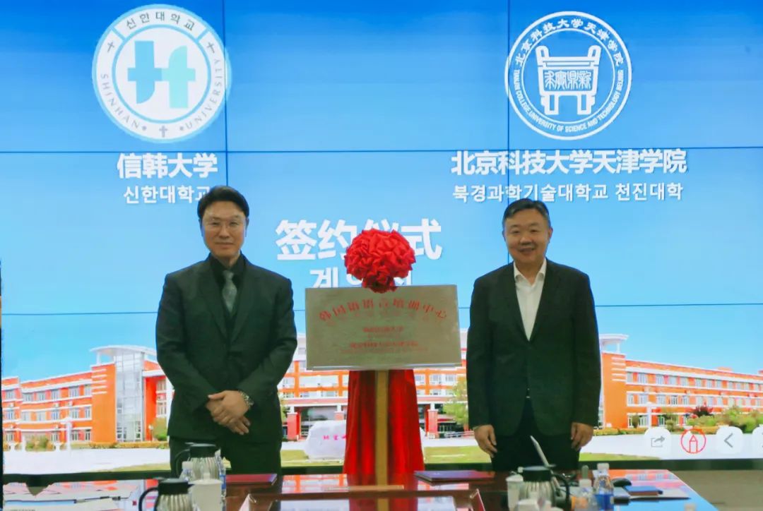 康圣鐘校長和丁煦生院長為韓國語語言培訓中心揭牌