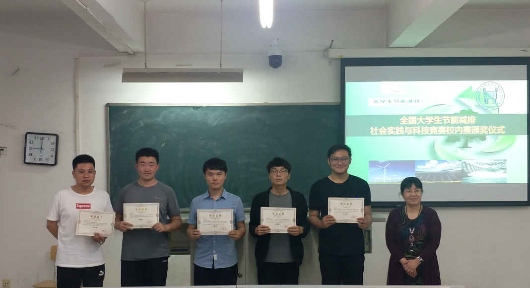 2019年5月15日晚上,金沙城js93線路檢測中心大學生節(jié)能減排社會實踐與科技競賽校內(nèi)賽頒獎在8教205舉行。環(huán)境工程系主任汪群慧教授、學生競賽指導教師劉俊杰、班嵐、李敏、宋娜、張麗榮等出席了會議,并為在校內(nèi)賽中獲獎的團隊頒獎。