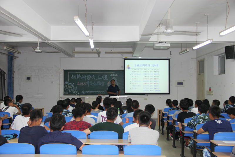專業教育由系黨總支羅富臣老師主持,活動在一陣陣掌聲中開始。系主任沈衛平教授從專業培養目標、課程設置、教師隊伍狀況、就業前景、就業發展方向等方面向新生做了詳細專業介紹,使學生了解了本專業的學習方法、就業方向以及就業崗位應具有何種素質和能力,讓新生初步樹立熱愛專業的意識,為今后的專業學習打下良好的思想基礎。隨后,材料系王洪濤老師為新同學們針對專業實踐教學及創新創業教育進行講述,王老師從實訓實習、創新課程等方面進行介紹,使同學們對材料學科的實踐方面有了初步了解。教育會過程中,老師們還希望新同學盡快了解大學、適應大學學習和生活,盡快樹立新的奮斗目標。