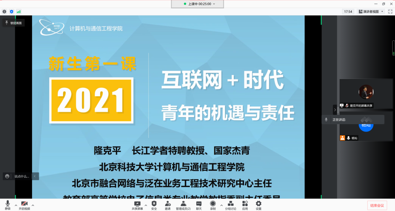 2021年11月4日,信息工程學院邀請北京科技大學計算機與通信工程學院院長、教授、博士生導師隆克平教授給21級做新生教育講座,此次講座采用線上形式組織,信息工程學院院長許學東,信息學院21級新生597人參加此次講座,此次講座由信息學院辦公室主任楊燦主持。