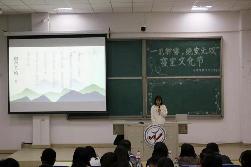 2019年10月12日,經濟學院學生會在8教108舉辦了“一見鐘寢,絕室無雙”寢室文化節活動。此次活動的舉辦是為了營造“積極、健康、勵志、尚學、創新、發展”的學生寢室氛圍。出席本次活動的嘉賓有經濟學院分團委書記馬海倫老師、19級金融輔導員黃昊老師、19級國貿輔導員蔡天宇老師及經濟學院分團委、學生會主席團。