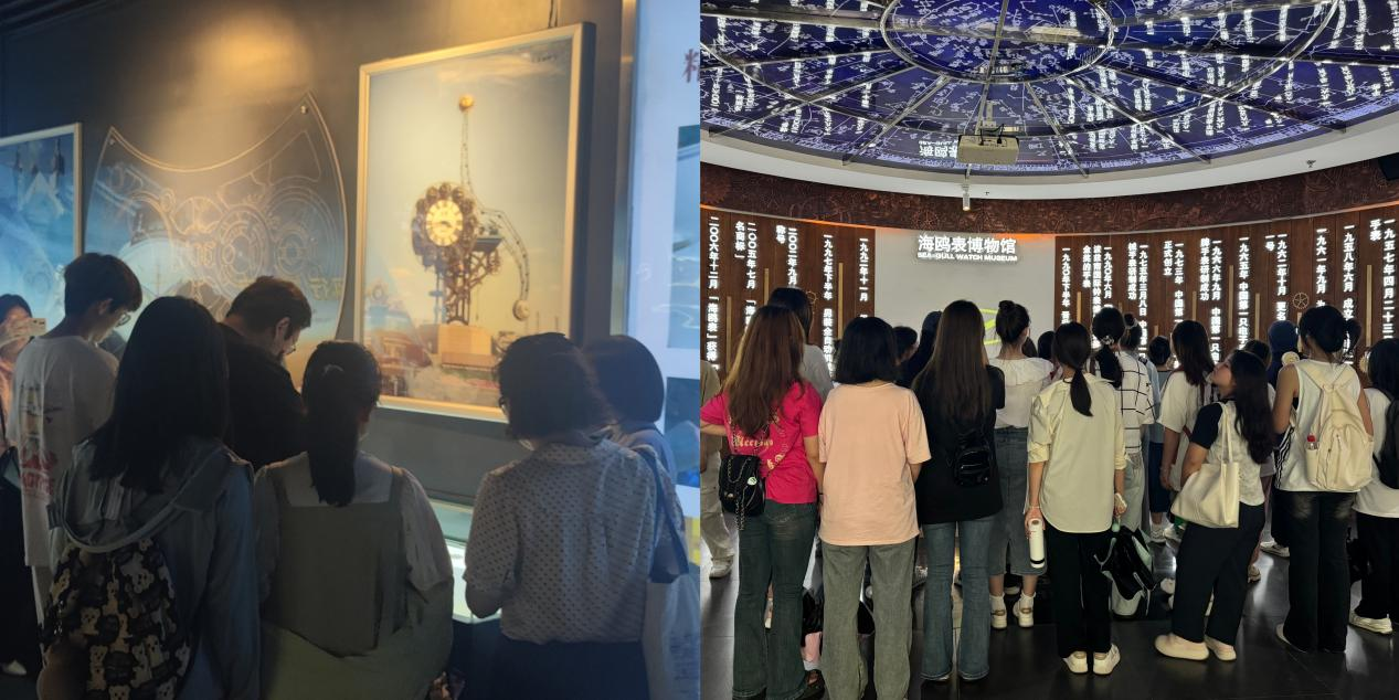 最后,師生沿著時間大道來到了海鷗表博物館,工作人員向大家介紹了海鷗表業集團的發展歷程。并引領師生們觀賞了博物館中陳列的設計精美、工藝先進的各類自主研發的手表及陀飛輪零件等。此外,在專賣店中,同學們也看到了最新款的手表產品,通過產品同學們形象地看到了我國制表業的興起與奮斗拼搏的歷程。