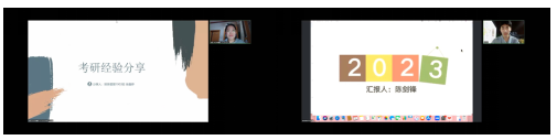 2019級徐鑫婷學(xué)姐和2018級陳劍鋒學(xué)長結(jié)合自身的考研經(jīng)歷,先后圍繞院校選擇、考研流程、考研備考策略、名師及書目的選擇、科目復(fù)習(xí)、調(diào)整自身學(xué)習(xí)狀態(tài)、考研復(fù)試方面的心得感悟等方面向同學(xué)們做了詳細的介紹,并就如何高效制定學(xué)習(xí)計劃、如何提高有效的學(xué)習(xí)時間給出了各自的意見,為同學(xué)們提供了參考。