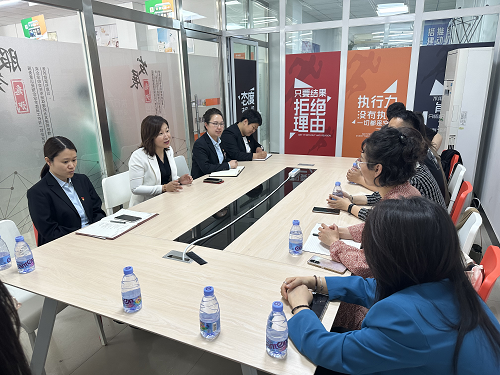 座談中,王賓容老師對公司的熱情接待表示感謝,對企業取得的成績表示贊許,并從專業設置、學科建設、就業工作等方面介紹了管理學院的基本情況,她表示,要充分發揮校企雙方各自優勢,以企業崗位需求為導向,加強溝通與交流,在教學實踐、產學研創、人才培養、社會服務等方面進行有機銜接和深度融合,實現互利共贏。李光老師就開展創業創新、學生實習等具體合作進行了商談,王曉欣老師就開展實踐教學、案例教學等具體合作進行了接洽。