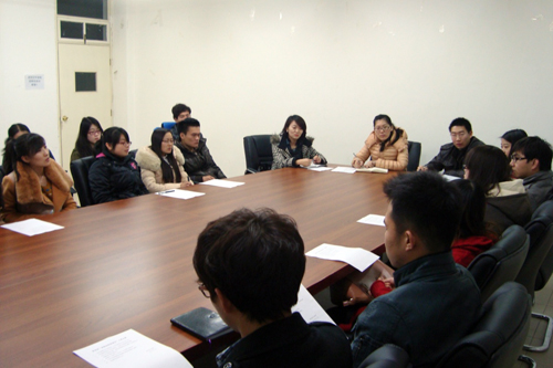 為及時(shí)把握我系學(xué)生寒假假期思想動(dòng)態(tài)及新學(xué)期學(xué)業(yè)規(guī)劃,增強(qiáng)師生互動(dòng),管理系于2012年3月12日晚,在1教309召開(kāi)了管理系寒假返校座談會(huì)。管理系學(xué)生工作負(fù)責(zé)人馮海燕老師、管理系分團(tuán)委書(shū)記鹿群老師出席會(huì)議,與同學(xué)們就近期國(guó)內(nèi)外時(shí)事熱點(diǎn)、寒假所見(jiàn)所聞、家鄉(xiāng)故事、就業(yè)形勢(shì)及新學(xué)期計(jì)劃等若干問(wèn)題展開(kāi)了討論。
