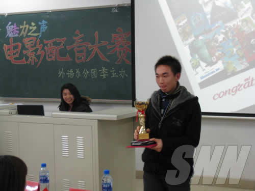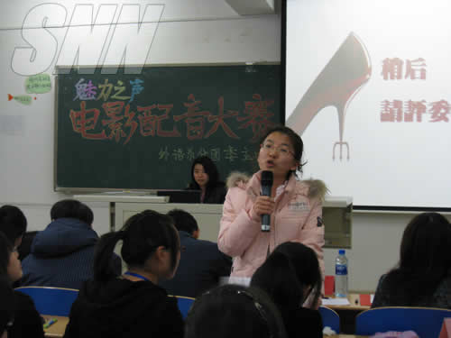 本次活動的主要目的是通過英語電影配音比賽,在學院范圍內調動起學生學習英語口語、提高自身英語水平的積極性,同時培養同學們的團隊合作精神。經過上周的預賽,共有7支隊伍進入決賽。參賽隊伍帶來的精彩的英文影片讓現場觀眾大飽眼福,而各支隊伍對影片的全新演繹更是讓全場觀眾耳目一新,同學們流暢的口語、默契的配合也給在場的所有人留下了深刻的印象。穿插在比賽中的影片競猜環節也讓觀眾們參與到配音大賽中來,不少同學通過回答問題獲得了紀念品,同時給我們帶來了無盡的歡樂。