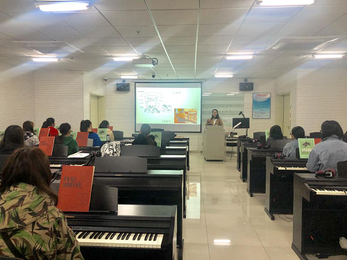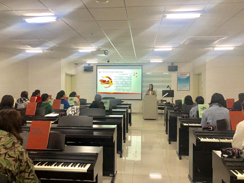 為扎實開展好“不忘初心、牢記使命”主題教育,貫徹落實學院以“四個一”為載體,為身邊群眾至少辦一件實事好事的部署,10月22日下午,藝術學院的何藝源老師代表藝術學院鋼琴教研室教工黨支部為北京市大興區保利茉莉公館小區中從事幼師學前教育的老師們、音樂愛好者及一些年輕群眾進行了一次普及音樂知識的教學和唱響紅歌活動。