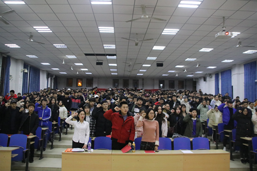 活動(dòng)以模擬憲法宣誓開(kāi)場(chǎng)。法律系分團(tuán)委書(shū)記、兼職團(tuán)委副書(shū)記羅大欽領(lǐng)誓。