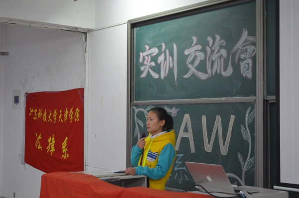 2015年10月22日18:30,法律系學生實習經驗交流會在8教104召開。法律系教研室主任王哲、教師王超、分團委書記閆謖、輔導員張麗榮、孫超以及法律系13、14級全體學生參加了此次交流會。