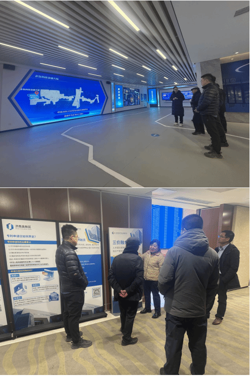 1月17日,在夏傲福董事長的引薦和陪同下,天津?qū)W院一行參觀了齊魯科技金融大廈、山東科技大市場和山東省知識產(chǎn)權(quán)公共服務(wù)平臺等單位,實地考察了山東省知識產(chǎn)權(quán)服務(wù)行業(yè)的最新動態(tài)。