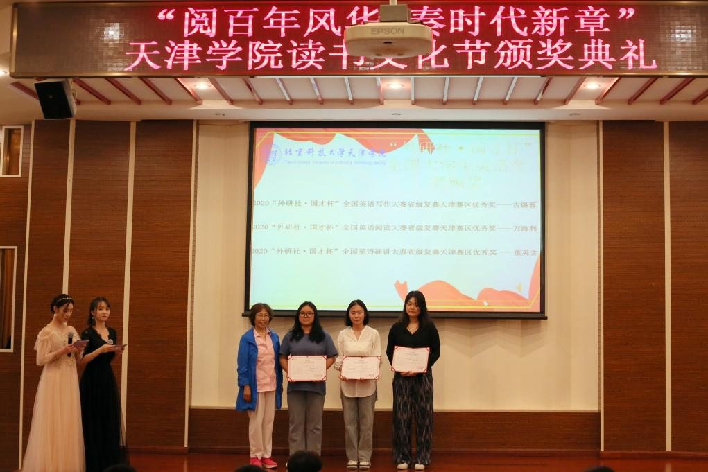 此次頒獎典禮揭曉了“百年輝煌,世界聽我說”第二屆全國“圖書館杯”全民英語口語大賽、2020“外研社·國才杯”英語系列大賽、“賞音悅目,聲臨其境”外文配音大賽、“閱享新時代·書香贊榮光”暢想之星征文大賽、2020年天津市“新時代? 一帶一路實踐行”主題實踐活動、2021北科天院最美讀書人、2021北科天院閱讀推廣大使、2021“我繪我風采”動漫繪畫大賽等11項活動的獲獎名單,共計60余名學生獲獎。