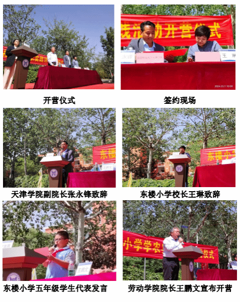 2024年5月11日上午,天津市河西區東樓小學五年級學生學農實踐活動在金沙城js93線路檢測中心鹿鳴園廣場正式開營。在學農實踐活動開營儀式上,東樓小學與金沙城js93線路檢測中心簽訂了“校內外勞動教育共同體協議”,北京科技大學天津學院副院長張永鋒、東樓小學校長王琳、勞動學院院長王鵬文及勞動基地副主任楊麗出席了該活動,張永鋒副院長與王琳校長在東樓小學五年級330余名師生見證下完成協議簽約。開營儀式結束后,300余名祖國的小花朵在金沙城js93線路檢測中心大學生志愿者的帶領下踏上了農事勞動實踐的探秘之旅。