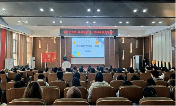 活動當天上午,在理工圖書館學術報告廳由黨總支書記張莉主持舉辦了校友經(jīng)驗分享會,法律系各年級約150名同學現(xiàn)場聆聽了學長學姐的分享。2014屆法學專業(yè)畢業(yè)生王欣宇、2017屆法學專業(yè)畢業(yè)生孔龍、2018屆法學專業(yè)畢業(yè)生劉遠航進行分享,校友們結合各自不同的境遇與心境,分享了成為一個“大人”的收獲和感觸,句句話語流露出對母校師長的感恩、對校園生活的懷念、對學弟學妹的希冀。