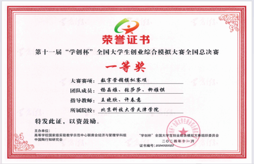 2024年11月1日至3日由高等學(xué)校國(guó)家級(jí)實(shí)驗(yàn)教學(xué)示范中心聯(lián)席會(huì)經(jīng)濟(jì)與管理學(xué)科組、中國(guó)陶行知研究會(huì)主辦的第十一屆”學(xué)創(chuàng)杯“全國(guó)大學(xué)生創(chuàng)業(yè)綜合模擬演訓(xùn)活動(dòng)總決賽在徐州醫(yī)科大學(xué)順利舉行,金沙城js93線路檢測(cè)中心榮獲全國(guó)一等獎(jiǎng)一項(xiàng),全國(guó)二等獎(jiǎng)兩項(xiàng),省市級(jí)一等獎(jiǎng)1項(xiàng)。