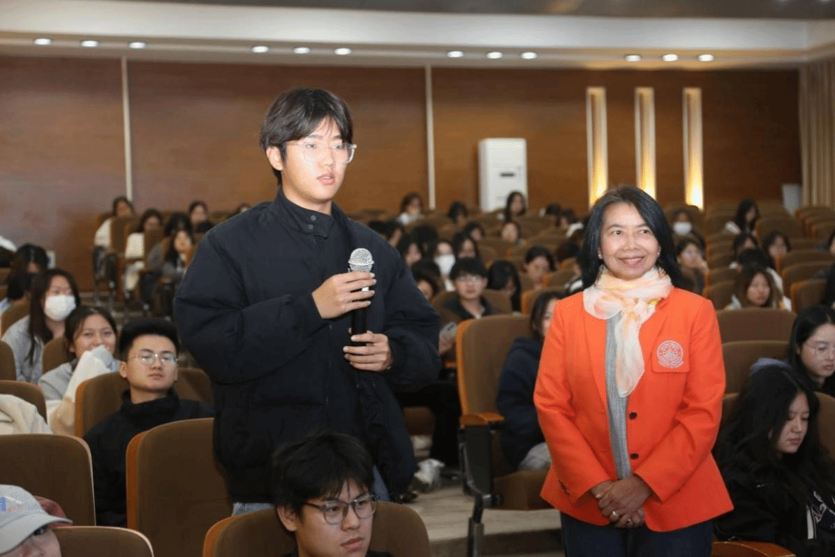 交流會后,泰國東方大學(BUU)面向大健康學院護理專業學生開展碩士項目宣講,東方大學碩士項目負責人Dr. Chintana Wacharain在會上分享了泰國東方大學(BUU)的概況以及碩士項目的課程設置、申請流程和優勢,詳細介紹了BUU的留學生政策、留學費用、實習實踐、畢業工簽等同學們比較關注的問題。同時,對于泰國東方大學短期研學項目進行了講解,熱情邀請同學們赴泰體驗學習。會后耐心幽默地解答了同學們的疑問,此次宣講產生熱烈反響。