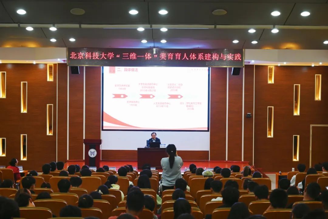10月9日下午,北京科技大學人文素質教育中心副主任兼文法學院副院長、北京市教學名師韓學周應邀在理工館學術報告廳作主題為“三維一體,美育育人體系建構與實踐”講座。他梳理了近年來學校美育相關政策,明確了高校美育工作的重點和發展方向,重點介紹了美育研究分會工作的特色成果以及北京科技大學人文素質教育中心“四位一體,一體兩翼”的課程體系建設經驗,拓寬了學校美育實踐新渠道,推進形成“一校多品”美育發展新局面。