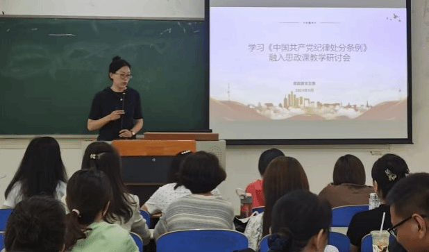 5月22日下午,思政部組織教師在9教106教師開展學習《中國共產黨紀律處分條例》融入思政課的教學研討會。毛澤東思想和中國特色社會主義理論體系概論課程教研室主任馮海燕,馬克思主義基本原理、中國近現代史綱要課程教研室主任楊金鈴,思想道德與法治、形勢與政策教研室主任陳霞做了主題交流發言,全體專職思政理論課教師參加了此次研討會。
