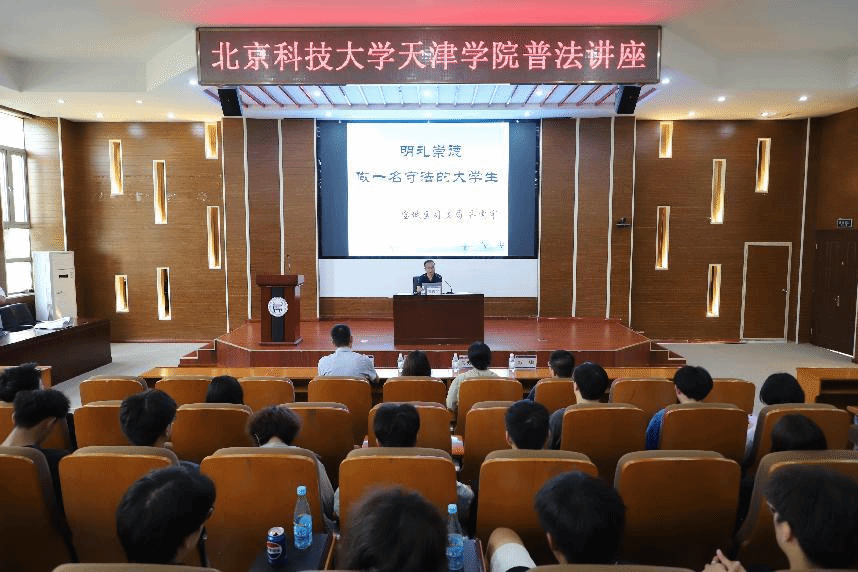為全面學習宣傳貫徹習近平法治思想,特別是習近平總書記“讓民法典走到群眾身邊、走進群眾心里”的重要指示精神,5月22日,學院邀請天津市寶坻區司法局行政復議審理與應訴科科長齊震宇作普法講座。師生代表200余人共同聆聽。